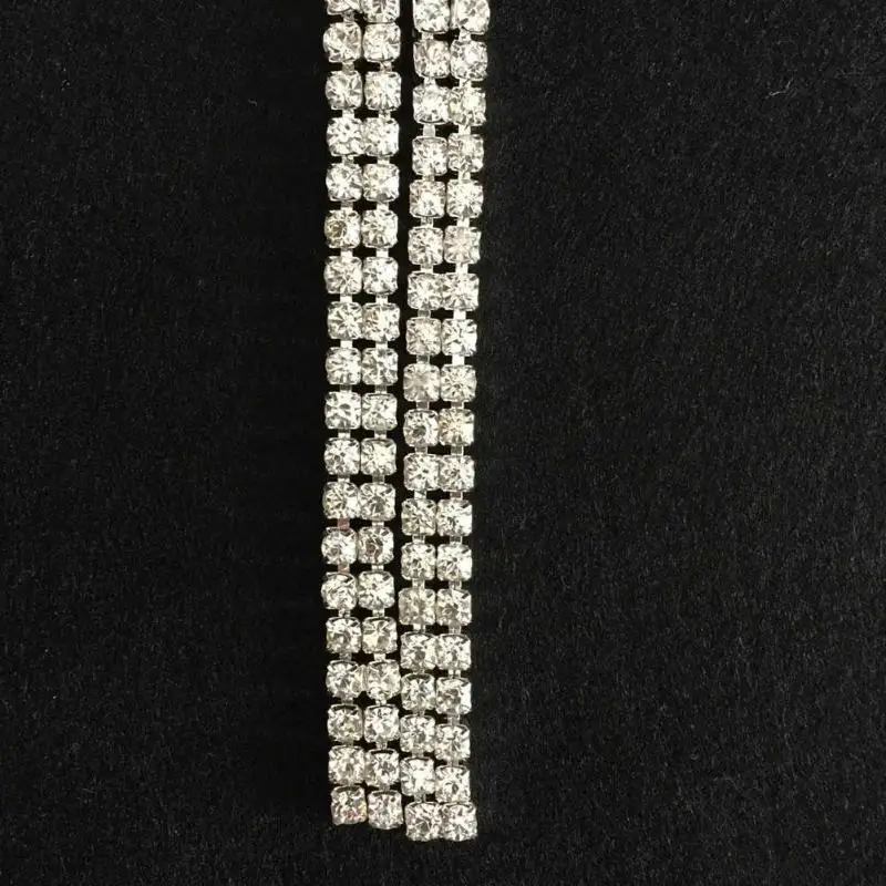 Best Seller 1Yard Clear Rhinestone Sew On Glue 2-Row Drill Chain Silver Close Chain Trim Trimming DIY Sewing Ac